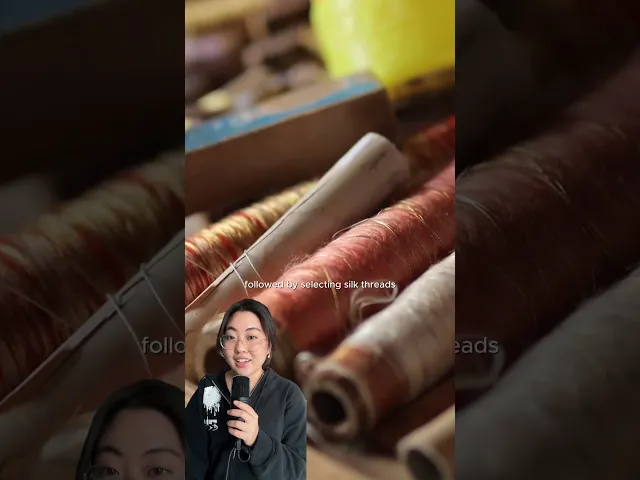 Kyo-Nui demands precision and patience. It begins with sokō, a design transferred to fabric, followed by selecting silk threads, often 20 to 30 shades from over 2,000 colors. Each thread is hand-twisted to create the intended depth and sheen for each piece.